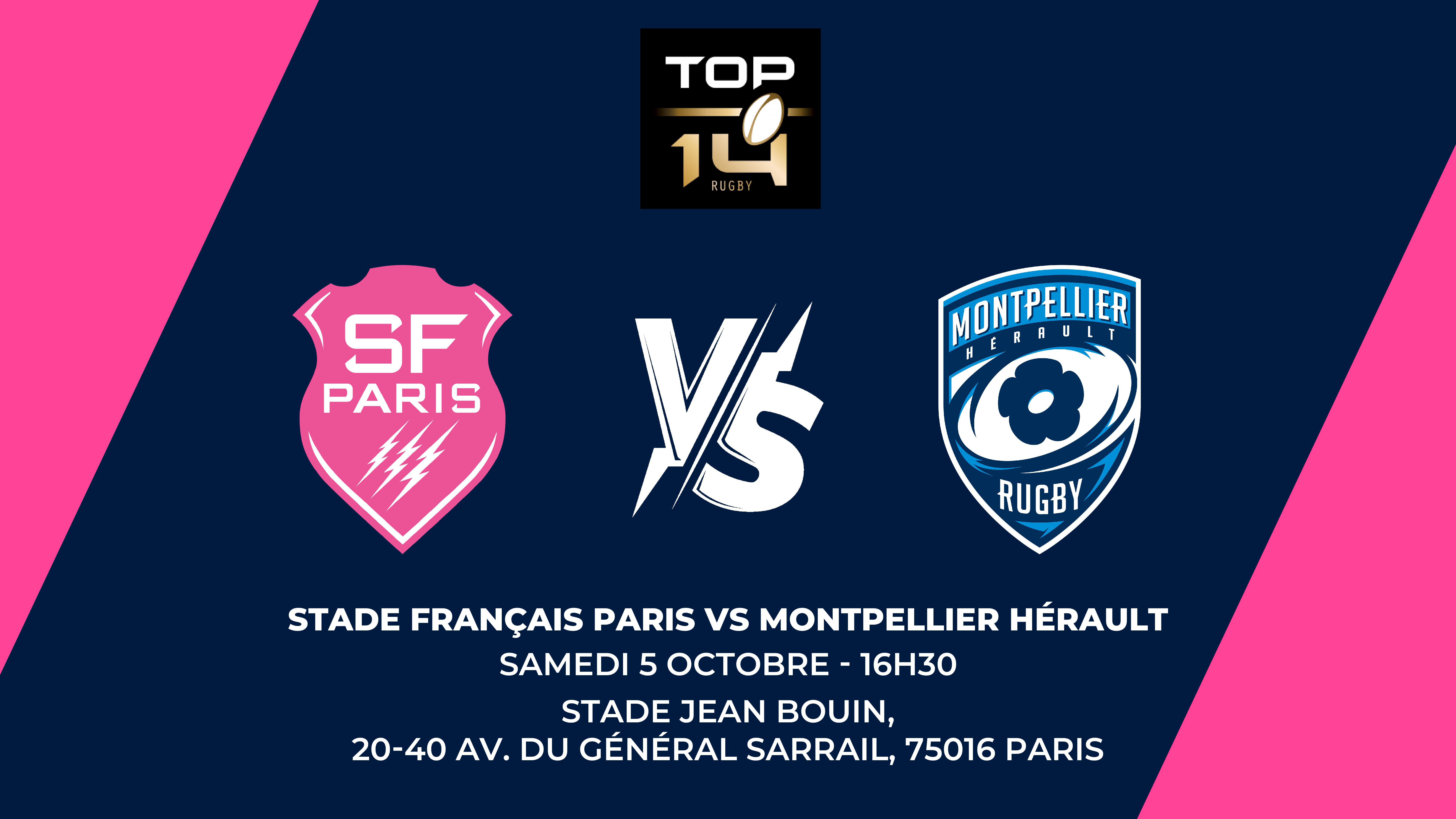 Le Stade Français Paris affrontera Montpellier le 5 octobre au Stade Jean Bouin 🏟️, dans un match qui s’annonce décisif pour la suite du championnat 🏉. Ce duel entre deux équipes de haut niveau promet d’être intense. Le Stade Français, porté par ses supporters 🔵🌸, tentera de faire valoir son avantage à domicile face à une équipe montpelliéraine toujours redoutable 💪.