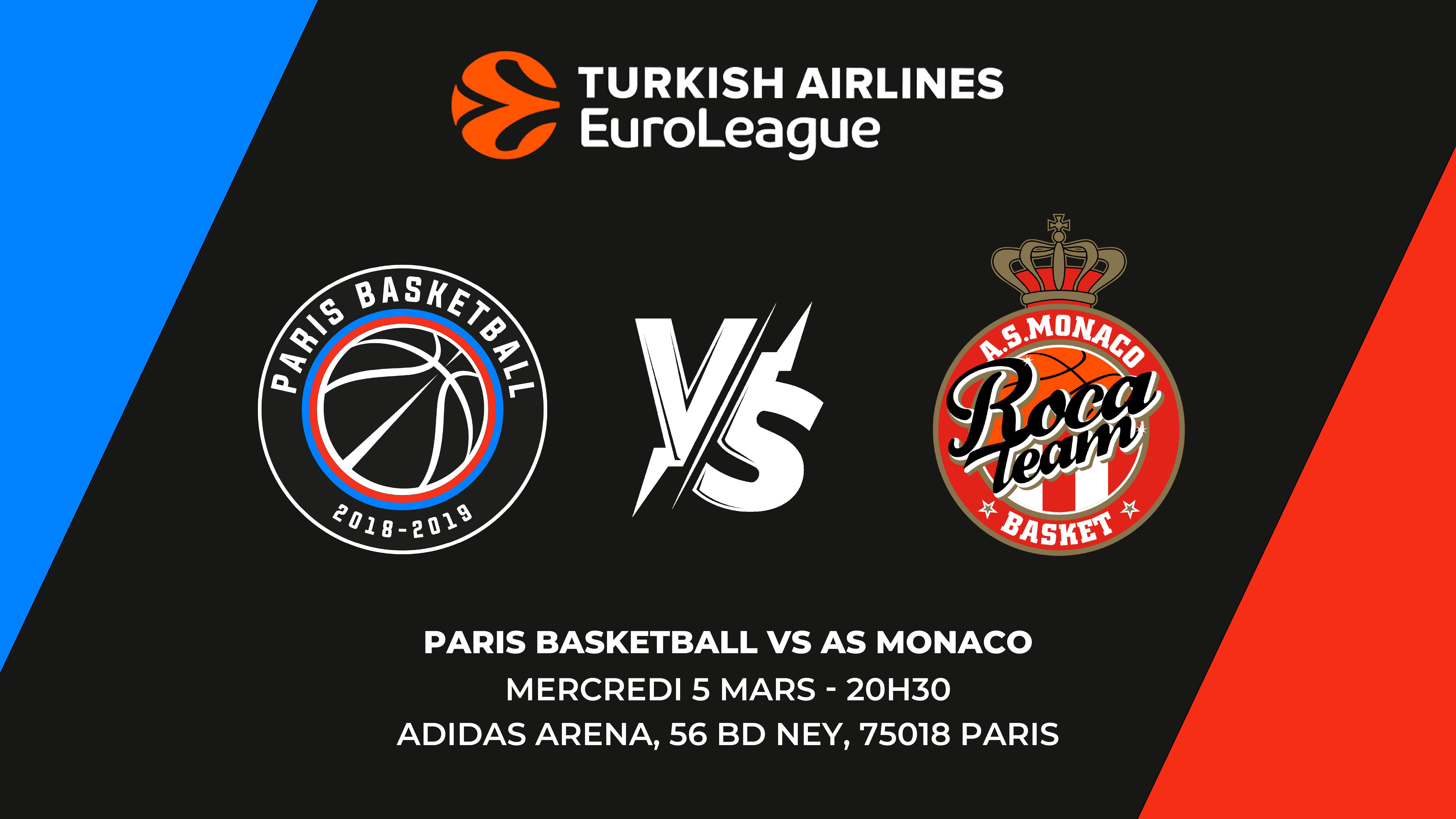 Le Paris Basketball reçoit l’AS Monaco le mercredi 5 mars à 20h30 à l’Adidas Arena 🏟️, pour un choc 100% français en EuroLeague 🏀 ! Un duel explosif entre deux équipes ambitieuses qui veulent marquer leur territoire sur la scène européenne 🔥.