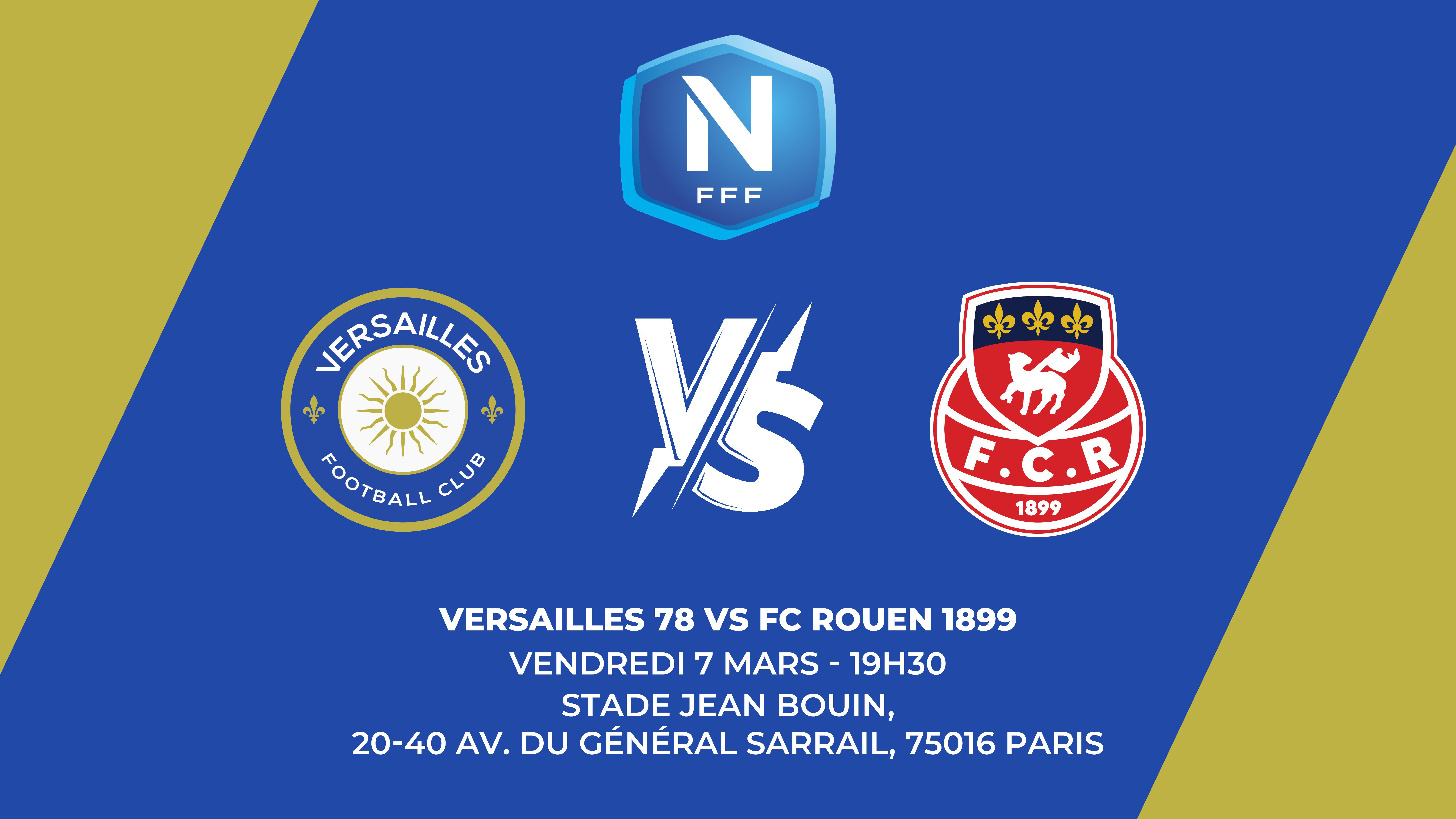 Le Versailles FC reçoit le FC Rouen 1899 le vendredi 7 mars à 19h30 au Stade Jean Bouin 🏟️, pour un match crucial en Championnat National ⚽️.