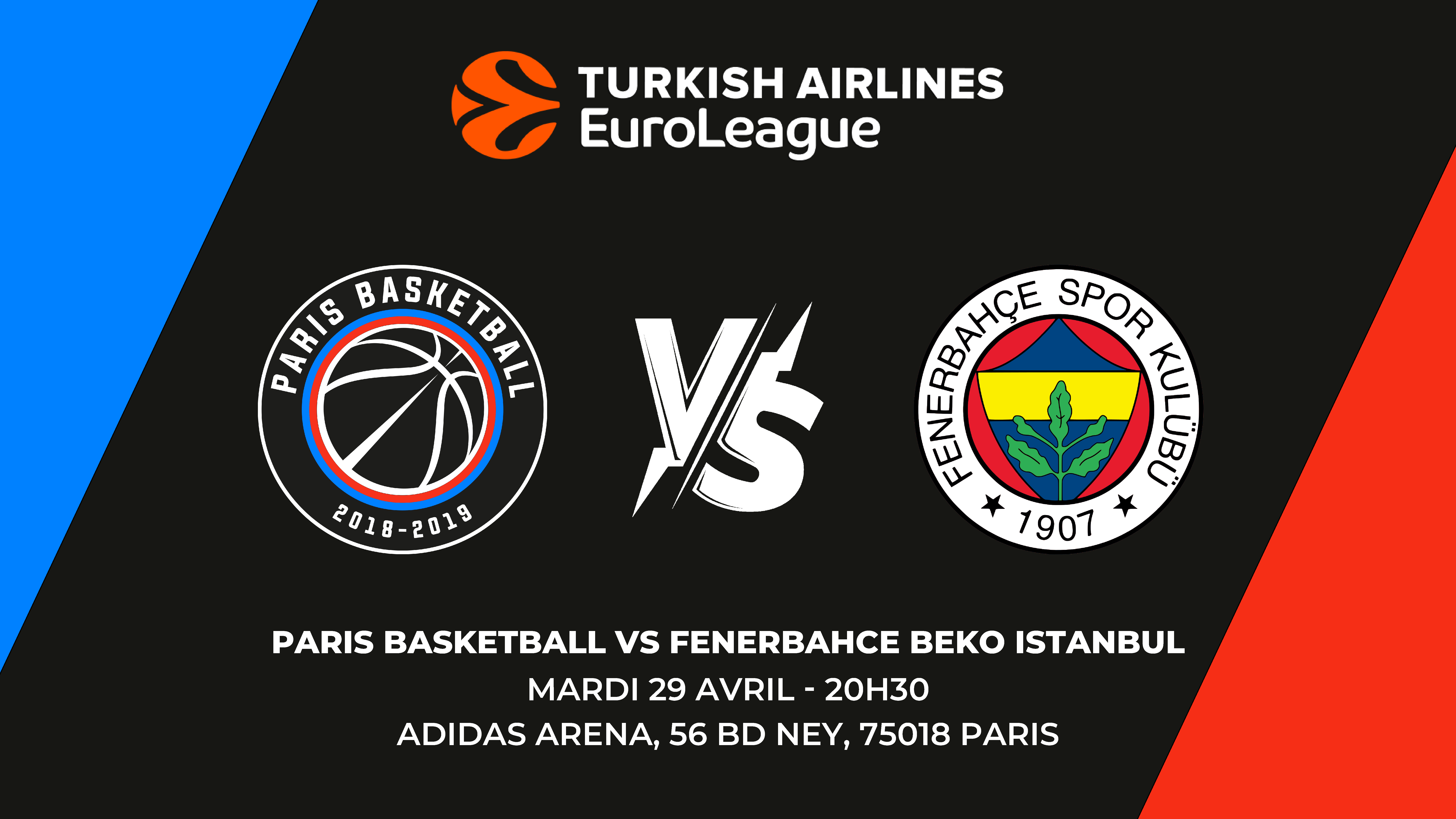 Le Paris Basketball affronte le géant Fenerbahce Beko Istanbul le mardi 29 avril à 20h30 à l’Adidas Arena 🏟️ dans un choc de l’EuroLeague 🏀.